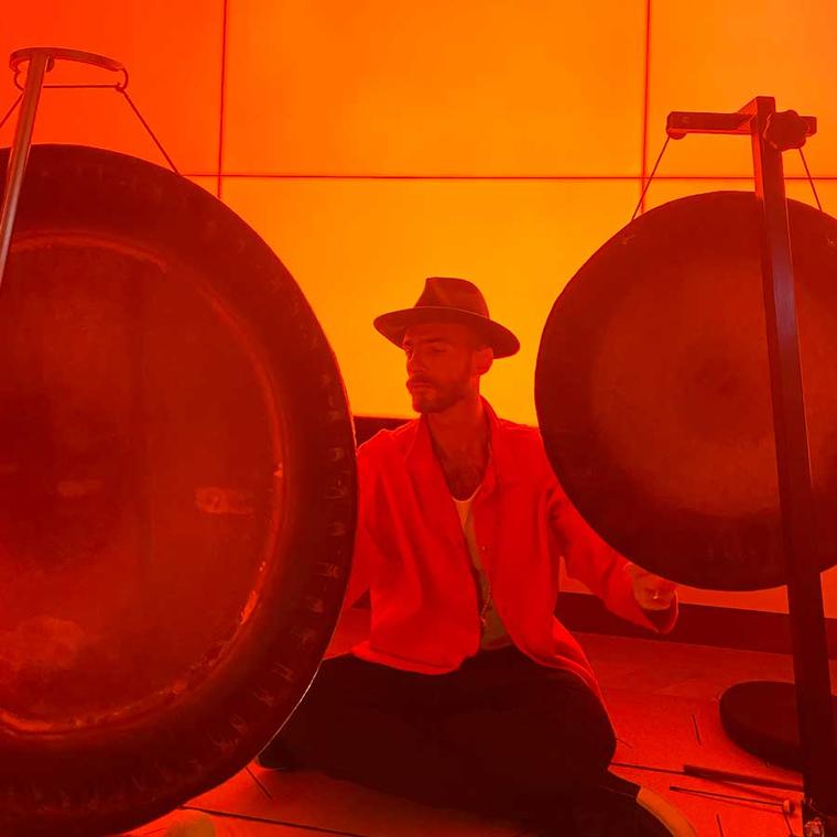 Meditation plays a key role in Cosendai's life, and has shared his gong baths with over 500,000 people, trained more than 150 instructors worldwide, and as an experience designer has worked with Armani, Maison Margiela, Olafur Eliasson, and Pace Gallery, to name a few.